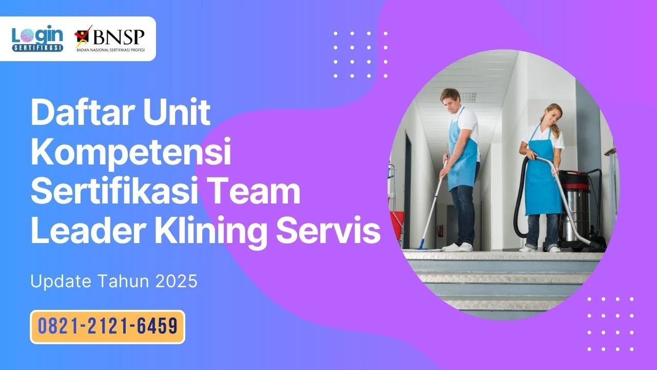 Berikut adalah daftar lengkap unit kompetensi sertifikasi Team Leader klining servis yang diujikan dalam sertifikasi BNSP: